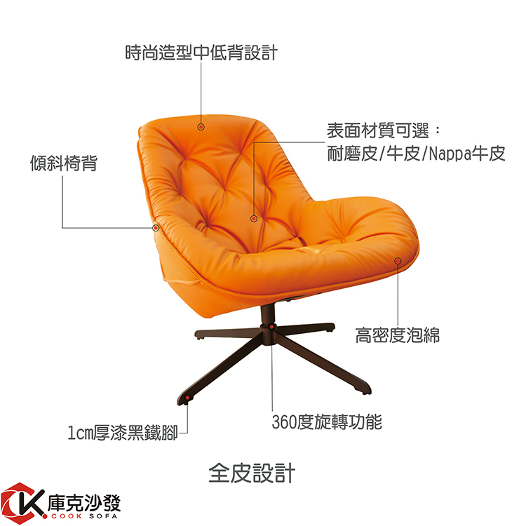 舒適坐墊:採用高密度泡棉填充,表面可選擇布料或牛皮,長時間坐也不易疲累。