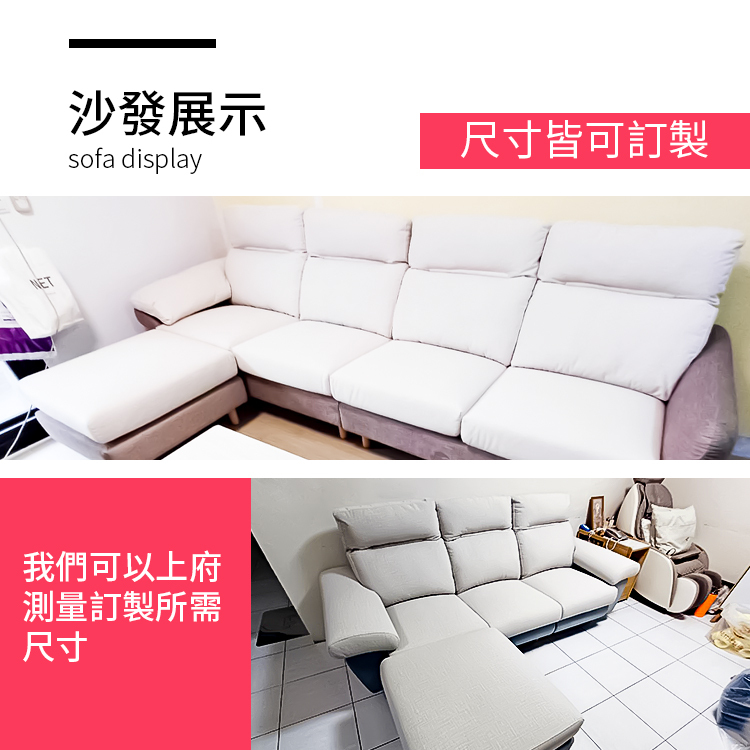 沙發套皆可拆卸清洗,可訂製任意尺寸規格,沙發表面材質、顏色多種可挑選、沙發軟硬度可調整,請聯絡我們,會有專人會您服務