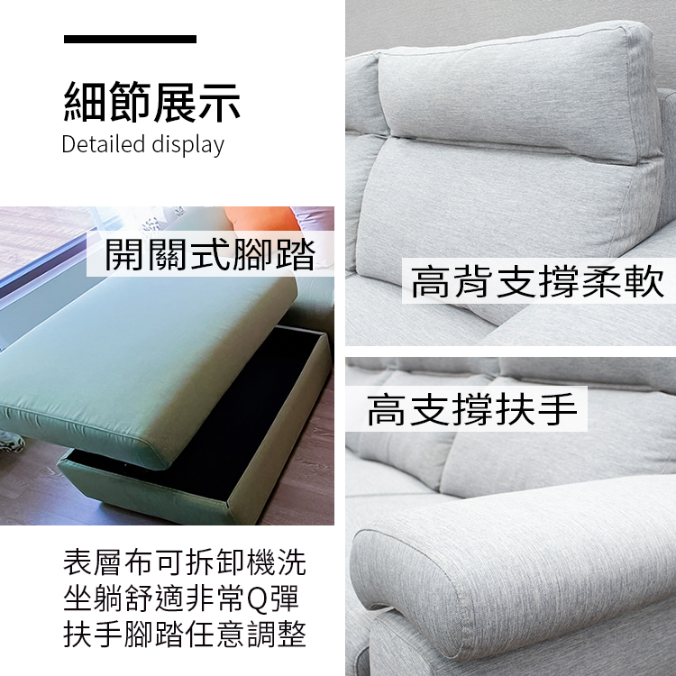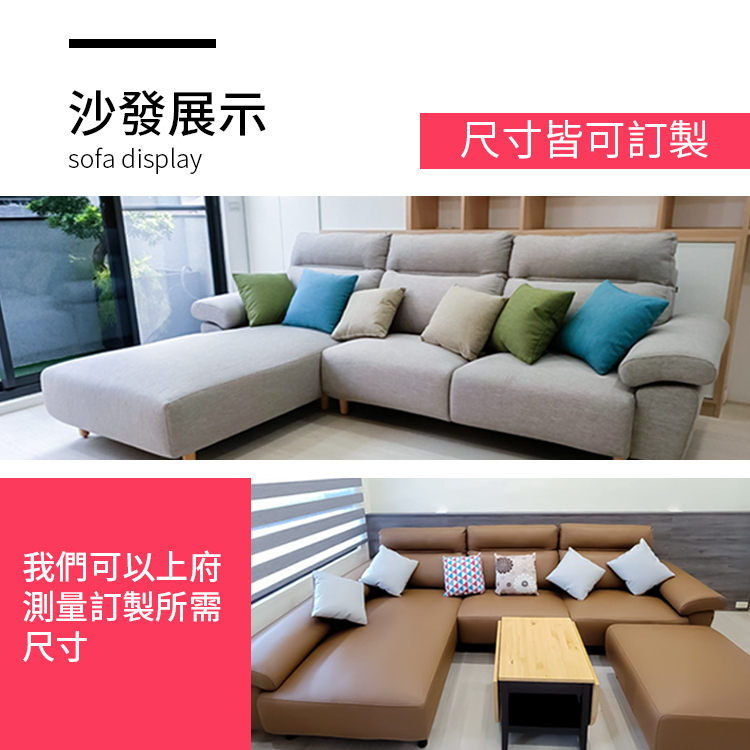 沙發套皆可拆卸清洗,易於保養與清潔,可依需求訂製任意尺寸規格,滿足您的空間需求。表面材質與顏色多樣可選,軟硬度與扶手設計亦可自由調整,貼合您的個人喜好與使用習慣。