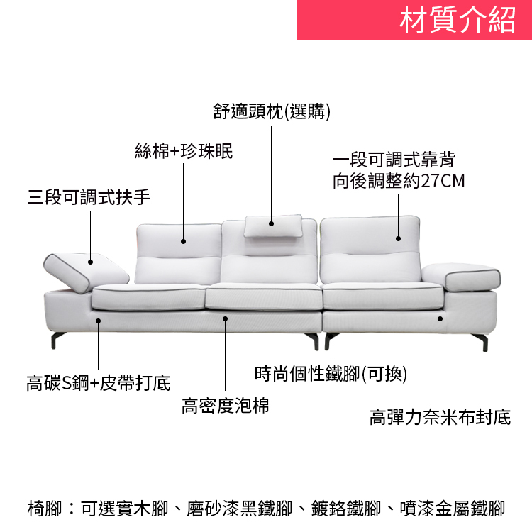 沙發套皆可拆卸清洗,易於保養與清潔,可依需求訂製任意尺寸規格,滿足您的空間需求。表面材質與顏色多樣可選,軟硬度與扶手設計亦可自由調整,貼合您的個人喜好與使用習慣。